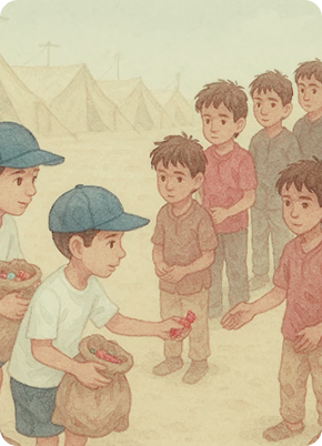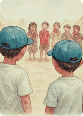 Born into a humanitarian family with parents serving the United Nations, Taha and Omar Bawa, visit refugee camps as kids.